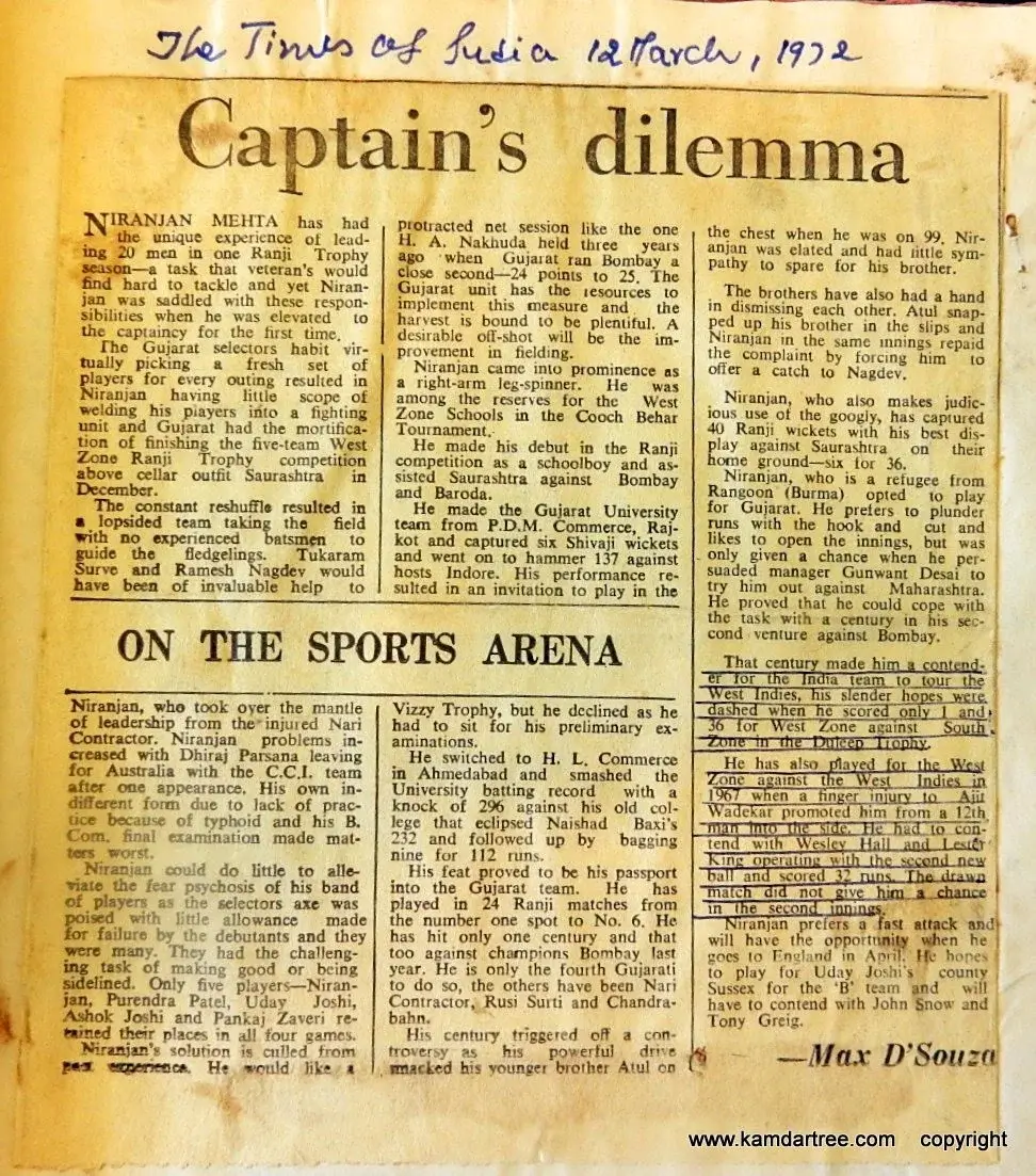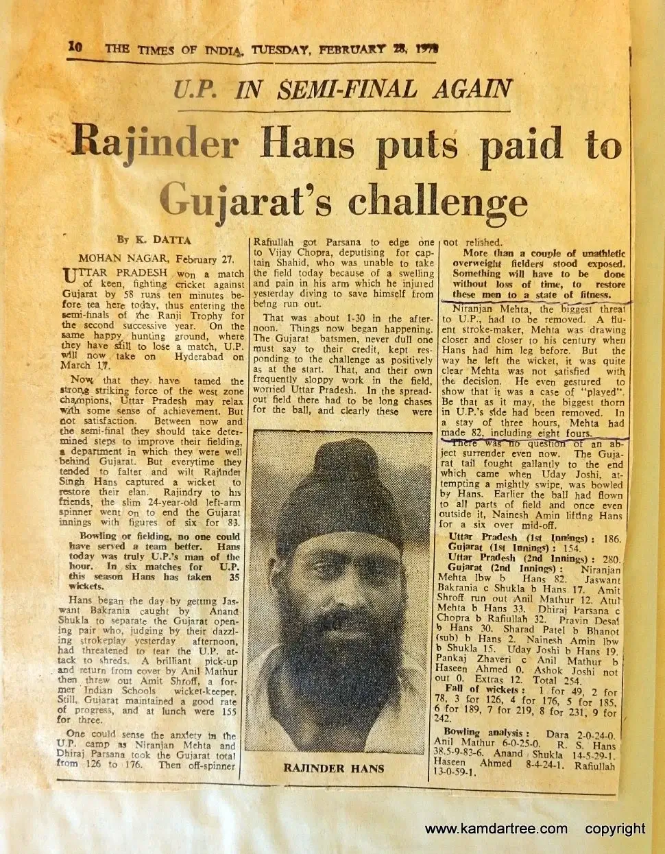 In those years, all Media houses were in Mumbai. For the Gujarat, Saurashtra, or even Baroda cricketers, items of NO interest for them. “Out of sight is out of mind” they Had No vested interest.